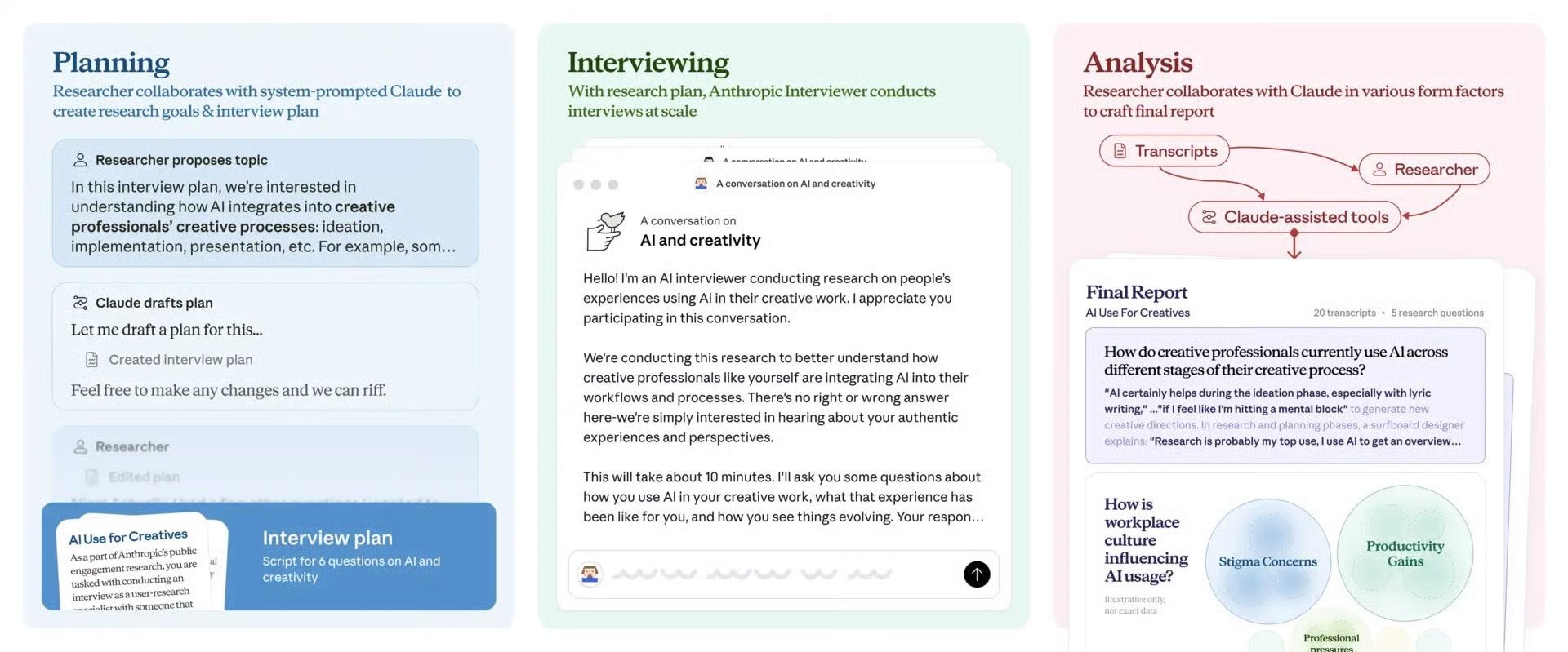 Anthropic ha lanzado una nueva herramienta llamada Anthropic Interviewer, un sistema impulsado por su modelo Claude diseñado para realizar y analizar entrevistas cualitativas a gran escala. En lugar de simplemente responder preguntas, esta IA ahora las formula y las plantea, debutando con un estudio sobre cómo 1.250 profesionales están integrando la inteligencia artificial en su trabajo.